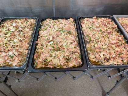 2・見本を見て、同じくらいの量を入れる。配り残しがないようにする。