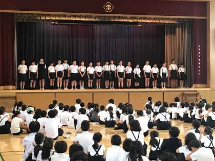 代表委員会の児童は、自己紹介と決意を表明していました。