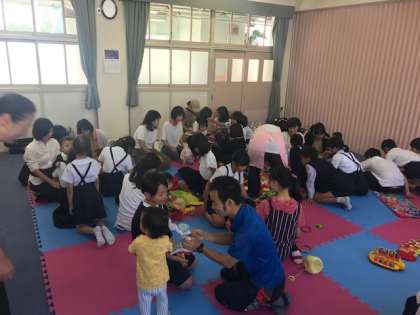 地域の未就学児が田中小学校に遊びに来てくれました。今日は、5年1組が20分休みに一緒に遊びました。