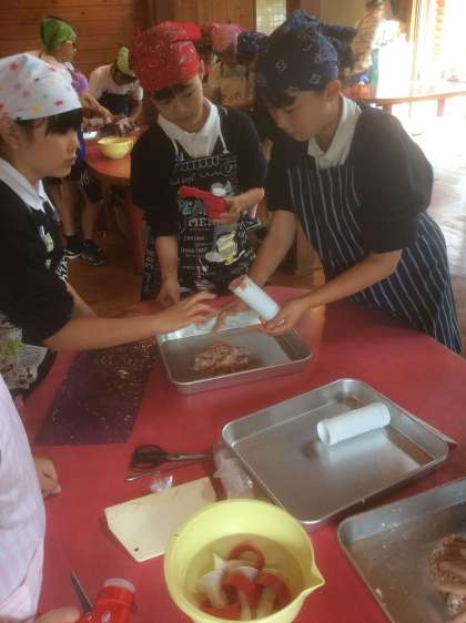 お肉を機械にセットして。