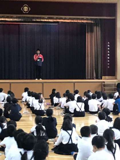 今日の児童集会は、全校遠足クイズでした。月曜日に実施された全校遠足について9つのクイズを集会委員が考えてくれました。集会の終わりには、新しくなった運動場や遊具の使い方について、生活指導の先生からお話がありました。