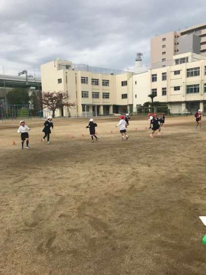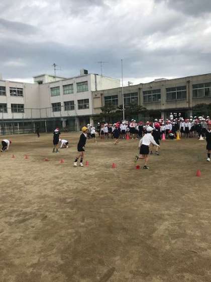 毎週木曜日は、児童集会の日です。今日は、縦割り班Aの集会で、班対抗のケンケンリレーを行いました。