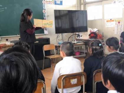 港図書館の方が来られて、絵本の読み聞かせをしていただきました。