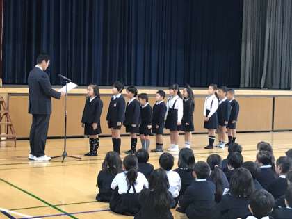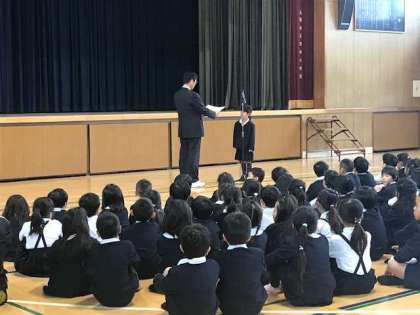 毎週火曜日は、全校朝礼です。