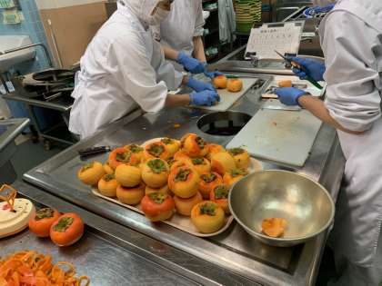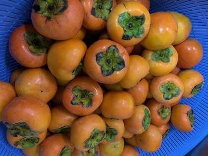 給食には富有柿(甘がき)と、平種無柿(しぶがき)が出ます。