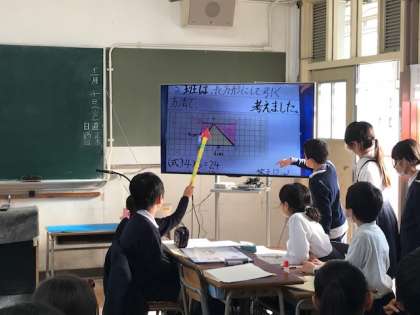 火曜日の5時間目に5年2組で算数の研究授業が行われました。三角形の面積の求め方を今までのが学習を活かして考えました。