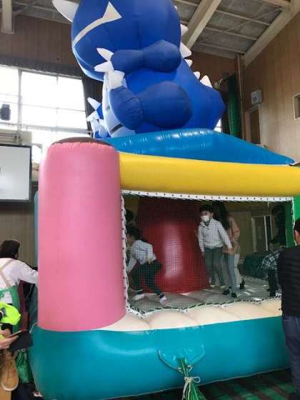 体育館では、ふわふわを子どもたちが楽しんでます!