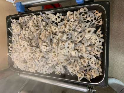 今日の給食の「焼きれんこん」は、何の調味料で味付けしているでしょうか。