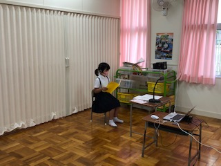 →5時間目に、リモートにて終業式を行いました。校長先生のお話、夏休みの過ごし方のお話に続いて、3年生と6年生の代表児童の発表がありました。少し短い1学期でしたが、子どもたちの発表を聞いているとたくさんの思い出ができたようです。