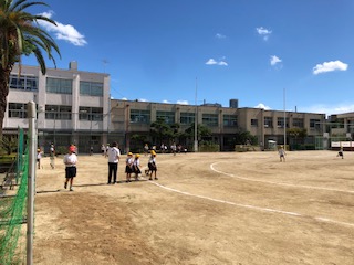 →まだまだ暑い日が続いていますが、運動場で元気に遊ぶ子どもたちの姿がたくさん見られます。休み時間の後には、手洗い、うがい、水分補給をしっかりと行なっています。