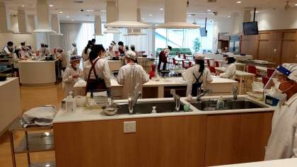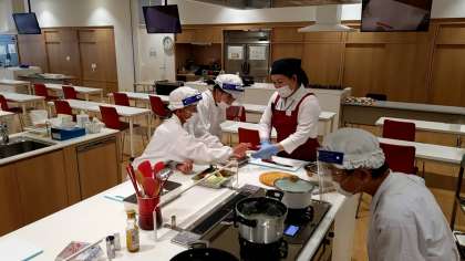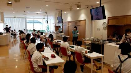 →ハグミュージアムでの活動に入りました。防災教室の後、エコクッキングの活動です。ご飯、みそ汁、野菜炒めを作ります。