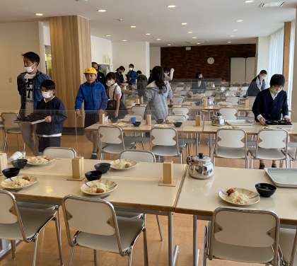 着替えも終わり、昼食の準備です。