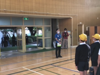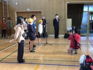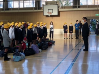 →時間通りに集合し、出発式を行いました。見送りの皆さんにも挨拶をして、元気に出発しました。