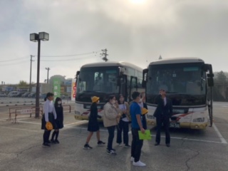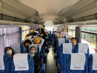 →?渋滞もなく順調です。乗り物酔いする児童もなく、皆元気です。これからの活動に備えてゆっくりと過ごす児童もいれば、楽しみすぎてテンション高めの児童もいます。みんなこの二日間にワクワクしています。