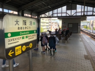 →天保山公園を出て、大阪港駅で切符を買ってグループで学校まで帰ります。