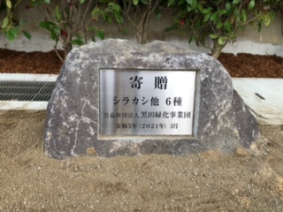 公益財団法人黒田緑化事業団様より、樹木の寄贈をしていただき、3月8日から11日にかけて植樹いたしました。シラカシ、ウメ、キンモクセイ、フジ、レットロビン、サツキツツジ、ヤマツツジといった多くの種類の樹木です。本当にありがとうございました。