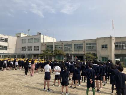→少し緊張した雰囲気でスタートしましたが、新しい教職員の方の紹介、担任の先生などの発表が行われると、普段の様子にもどっていました。さあ、新しい学年のスタートです。みんなで元気に頑張っていきましょう。