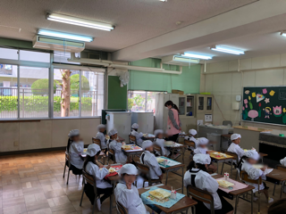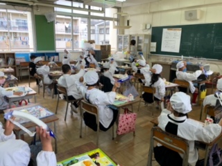 →本日から給食がスタートしました。一年生にとっては小学校でのはじめての給食、そしてメニューはカツカレーライス、おいしかったでしょ!