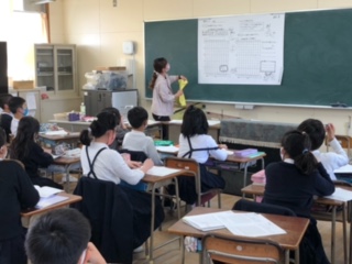 →4年生が算数の学習をしていました。熱心に取り組み、丁寧にノートをとっていました。