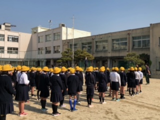 →運動場にて全校朝会を行いました。生活目標の「元気良くあいさつをしよう!」についてのお話がありました。気持ちよく過ごすためにも、元気の良いあいさつを心がけましょう!