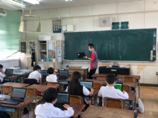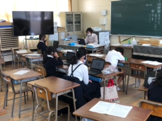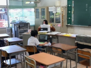 →各家庭にいる児童、預かりで学校にいる児童への双方向通信の確認を行いました。今のところ大きなトラブルもなく実施できているようです。中には、教科の確認問題に取り組んでいるクラスもありました。離れていながらもつながっている活動に、子どもたちが意欲的に取り組んでいました。