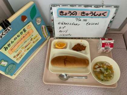 給食では、西洋かぼちゃをカレー・シチュー・みそ汁・かぼちゃの甘みつかけなどに使っています。