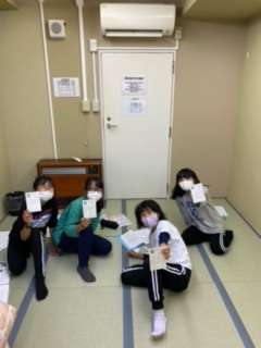 お風呂以外の班は、部屋で片付けやハガキを書いています。