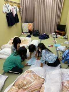 トランプをしたり、帰ってきた班長や室長から連絡事項を聞いたりしています。