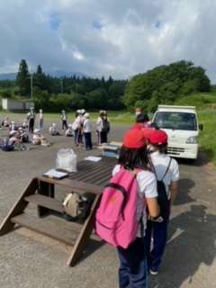 出発前に、先生から塩分チャージのタブレッツとスポーツドリンクを受け取り、班のみんなに配ります。