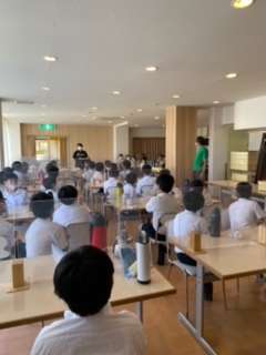 ごちそうさまをして、次の活動の説明を聞きます。