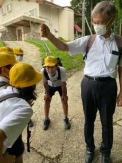 校長先生が見つけたシャクトリムシに子どもたちも興味津々。