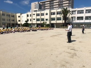 →地震および津波の避難訓練を行いました。落ち着いて、安全に避難することができました。万一に備えて、安全に行動できるように、普段から心がけておきましょう。