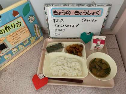 酢豚、中華みそスープ、焼きのり、ごはん、牛乳