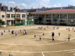 →1年生は団体競技の練習(玉入れ)をしています。入退場や競技中の確認を丁寧に説明しながら、練習を進めています。先生の話をよくきいて、活動することができています。運動会当日は、玉入れの勝敗だけでなく、かわいい演技?にもご注目ください。