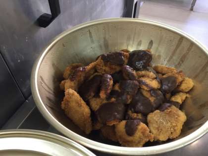 みそカツ、じゃがいもと野菜の煮もの、焼きのり、ごはん、牛乳