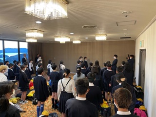 開舎式、立派な態度で行いました!成長を感じます!この後、避難訓練。そして夕食です!