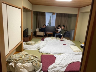 おはようございます!みんな元気に起きました!!布団はたたんで、部屋の隅へ。荷物の整理。洗面。朝から笑い声も聞こえます。修学旅行っていいですねー。