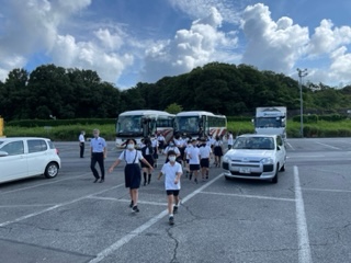 赤松SAに着きました。少し気分が悪くなる子もいますが、みんな元気です!!楽しむぜー!