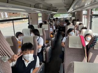 まほろばに着きました。思っていたより、バス酔いする子もいなくて、元気です。