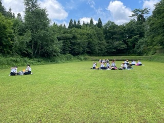 日差しは暑いですが、めちゃ涼しいです!!ひろーい芝生でお弁当です!快適ーーー!