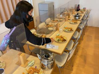 食事係が準備をしています。