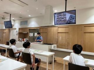 野菜の捨てる部分、ガスや水の使用量など、エコクッキングができたかどうか、学んでいます。