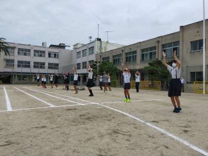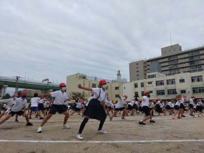 体育委員のみなさんが前に立って、全員で元気におどりました!
