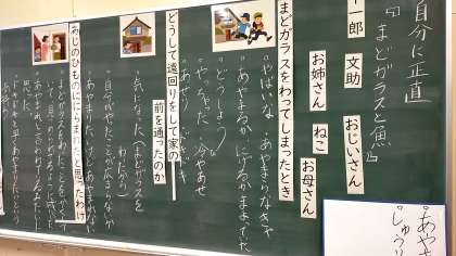道徳で「まどガラスと魚」というお話をもとに、自分に正直にすることについて考えました。(ほかの学校の先生方も参観にこられました)