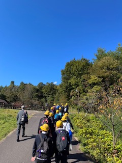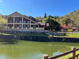 楽しいショーが終わり、少し移動して昼食会場へ行きます。紅葉も空も綺麗です。さぁ食べるぞー!