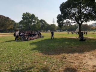 学年ごとに写真を撮り、鶴見緑地公園を出発しました。