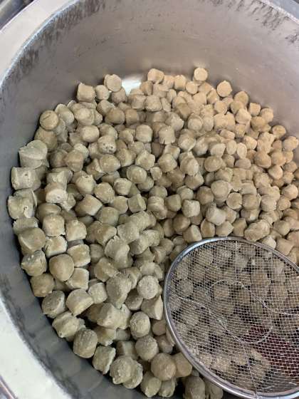 今日の給食には、かぼちゃぺーストを混ぜた「かぼちゃういろう」がでます。