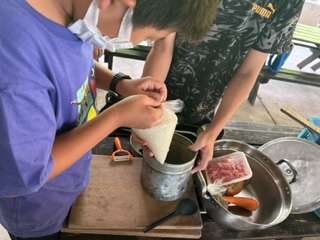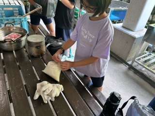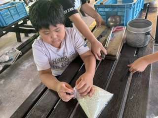 ハグミュージアムの知恵を生かして具材を切ったり、校長先生から火おこしのコツを教えてもらったりなど、それぞれ見通しをもって考えながら行動できています。