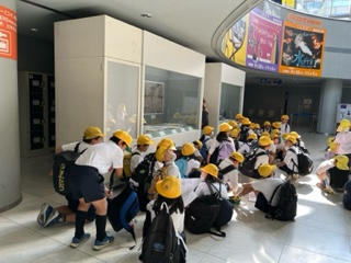 4年生は大阪市立科学館に社会見学に来ています。先程、到着し、この後グループで館内を回ります。プラネタリウムもあるので、楽しみですね。