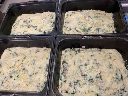 ほうれん草のグラタン、スープ煮、おさつパン、牛乳